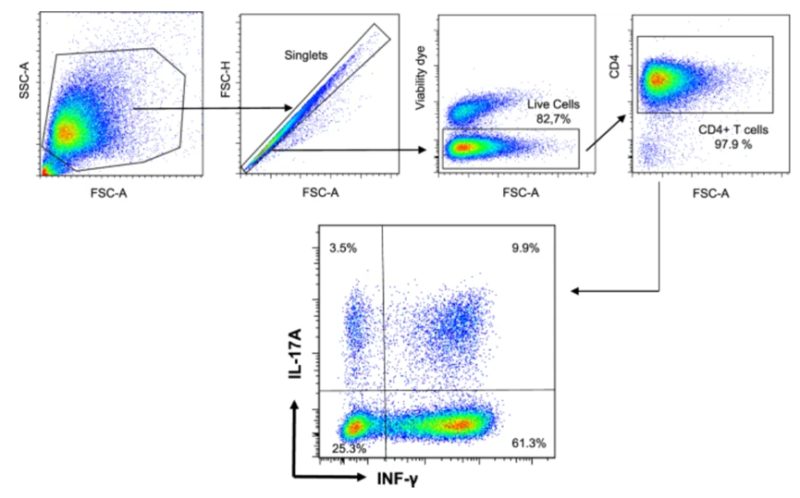 2025-09-23Th17细胞是CD4+ T细胞的重要亚群,具有促炎作用,在自身免疫疾病及炎症反应中发挥关键作用。与调节免疫反应的Treg细胞不同,Th17细胞主要通过分泌IL-17等细胞因子介导免疫激活。流式细胞术是检测Th17细胞比例及功能状态的重要手段。之前在Treg细胞的流式检测一文中,讲到了Treg细胞作用机制及流式检测。本文将以Th17细胞为例,介绍其流式检测方法及注意事项,为相关免疫研究提供参考。